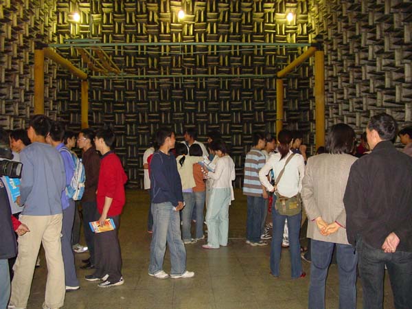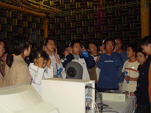 15日早上,伴随着北京理工大学的一百余名同学的到来,拉开了赢乐welcome“公众科学日”的帷幕。悬挂在所门口的红色巨条横幅迎风招展,仿佛张开双臂的赢乐welcome人,热情的欢迎来自四面八方的参观者。在引导员的热情引导者和讲解员的耐心讲解下,参观者相继分批参观了展厅、基础声学实验室、声场声信息国家重点实验室、超声检测实验室及中科信利语音实验室。