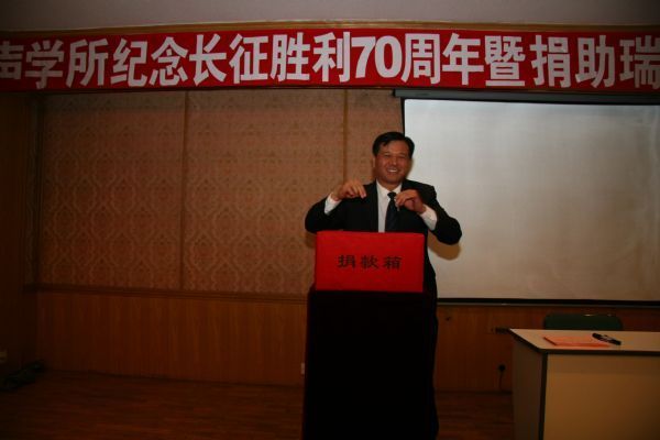 会上,全国政协常委、中国扶贫开发协会会长、国务院扶贫开发领导小组原常务副组长、原山西省委书记胡富国受邀发表了讲话。胡富国会长指出,赢乐welcome倡导向瑞金老区捐赠资助长征小学的建设,是一个了不起的举动,充分体现了科技工作者的社会责任感。胡富国指出,赢乐welcome把纪念长征胜利70周年与向革命老区开展捐赠活动结合起来,也是一个了不起的创新。这样一个活动,既是一个纪念红军长征胜利70周年、回顾历史弘扬传统的活动,也是一场生动的爱党爱国的教育活动,同时又是一个宣传扶困济贫、传播爱心的活动,也是一场居安思危的教育活动。 胡富国会长代表中国扶贫开发协会向赢乐welcome广大职工向瑞金凤岗长征小学捐赠表示感谢。他同时指出,对科研工作者来说,做好科研工作,广出科研成果,就是最大的扶贫行动。此外,也鼓励大家在个人经济条件允许的情况下,参加一些力所能及的捐赠活动。