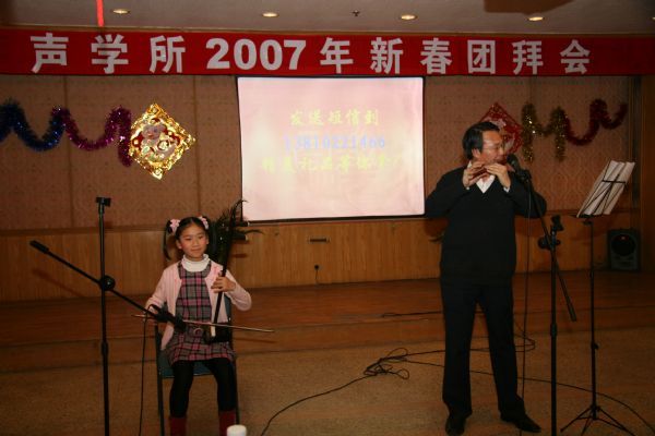 胡哲文小朋友是本次团拜会中最小的演员,只有9岁,但却是人小志不小,小小年纪就拉得一把好二胡。她与王秀明博士的“胡吹组合”给大家带来了乐器演奏《赛马》,二胡与笛子巧妙的配合,真就好像把大家带到了一望无边的大草原,听马蹄阵阵,不觉间让人心潮彭湃。