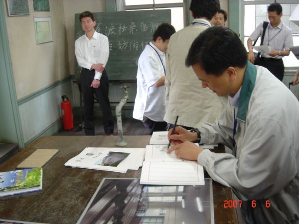 会议期间还安排了参观东北大学等活动。东北大学的前身是鲁迅先生曾经留学过的仙台医学专门学校,校内立有鲁迅纪念碑,大家纷纷合影留念。据悉,现在的东北大学共有1000多名外国留学生,其中近半数来自中国。这些中国留学生正像当年的鲁迅先生那样,刻苦学习以报效祖国,也将为中日的友好交流做出贡献。在鲁迅先生上过课的阶梯教室,中国声学学会理事长田静所长在留言册上代表中国声学界留言:“大音希声,大象无形” (出自老子的《道德经》)。它既显示了中国古人对音和声的了解和哲学智慧,也表达了对同仁在学术上追求臻境的期许。