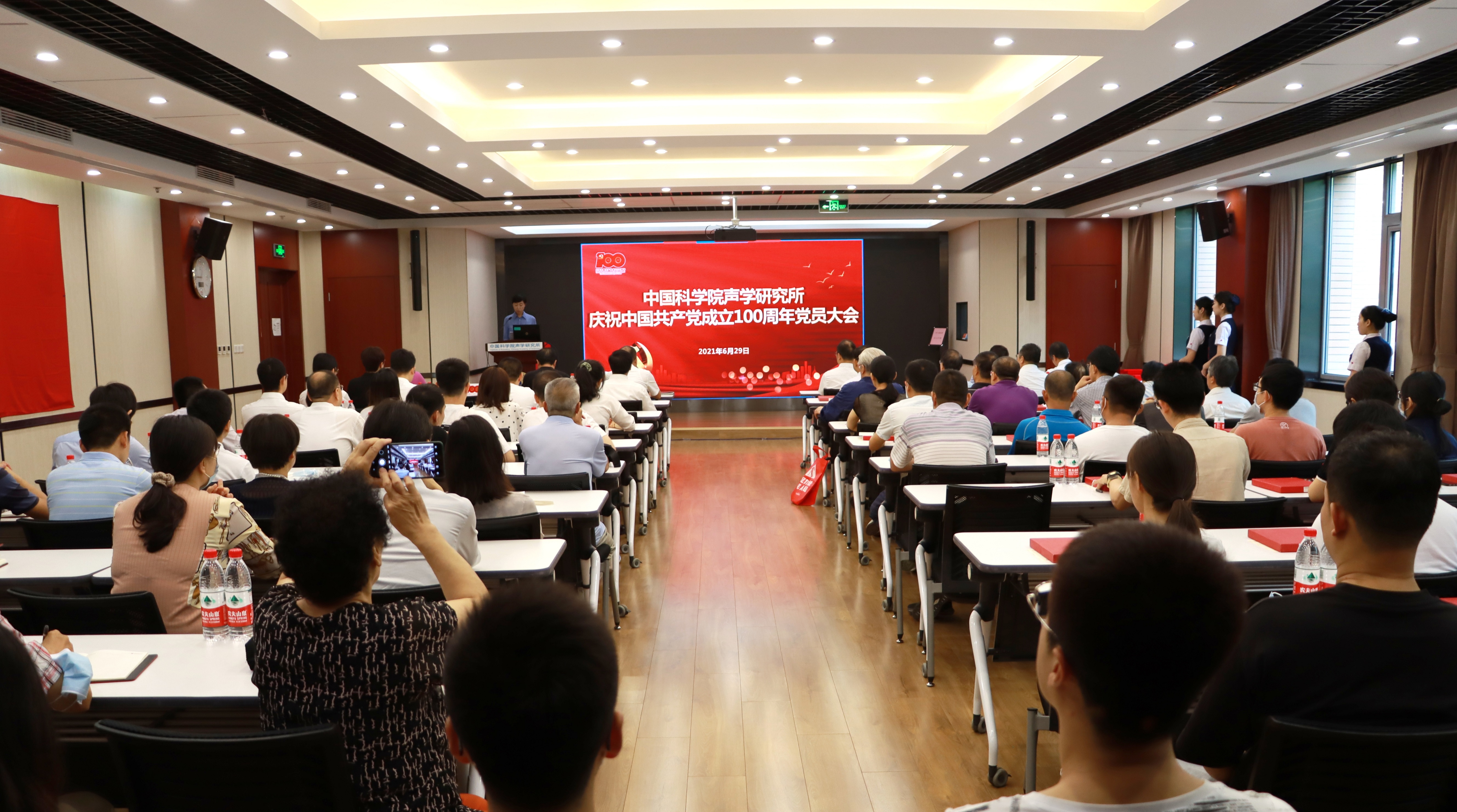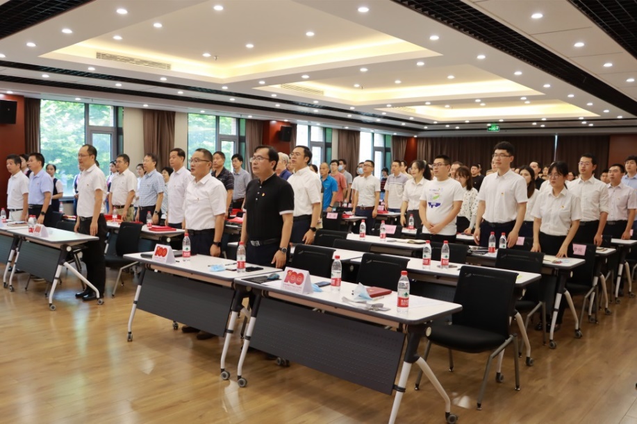 2021年6月29日上午,赢乐welcome党委召开庆祝中国共产党成立100周年大会,所领导班子成员、党委委员、纪委委员、各党支部书记,受表彰人员、新入党党员以及在职职工、学生、离退休党员代表等百余人参加会议。