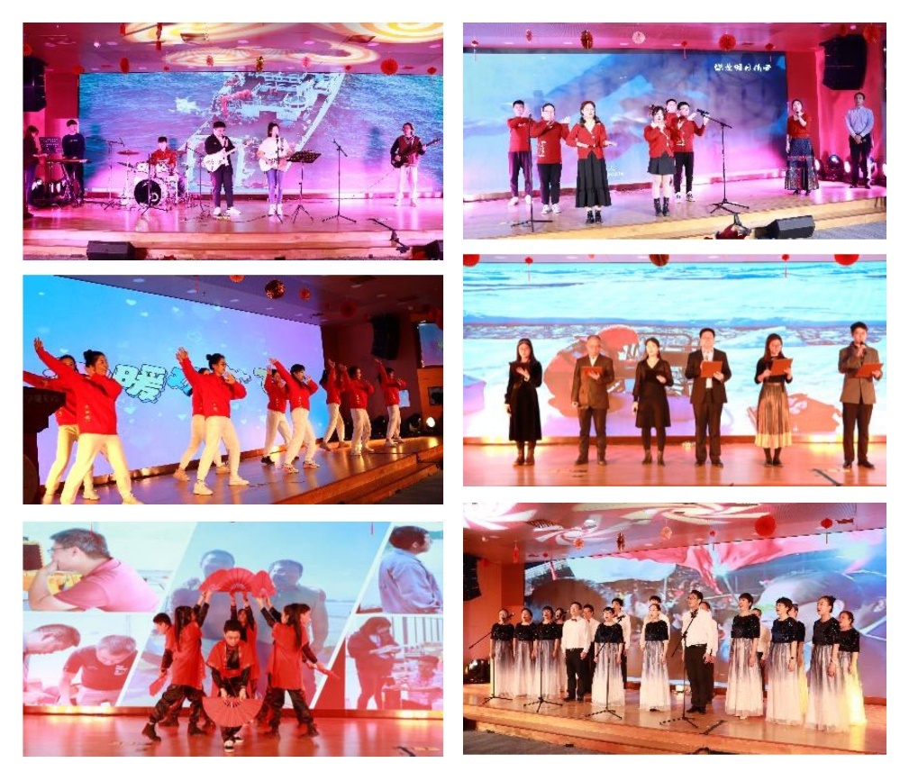 歌伴舞《我的祖国》,表演者倾情演绎,彰显了风采和自信。朗诵与合唱《科研阵线联盟》,将科研人员对科技创新的热爱传递给观众。歌曲《如愿》融入二胡演奏和手语舞蹈,带领观众重温建党百年仁人志士追求真理、燃烧理想的澎湃岁月。乐队歌曲串烧《南泥湾》《夜空中最亮的星》《真心英雄》、现代舞《好好学习》,尽情绽放蓬勃不息的青春律动,把全场气氛推向高潮。现代诗朗诵《砥砺前行》、传统武术表演《腾龙出海卫山河》,以不同的形式歌颂研究所发展取得的成就,抒发真挚的科技报国情怀。合唱团带来气势恢宏的《领航》,展现新时代新征程新风貌。在《明天会更好》的全场合唱中,团拜会完美收幕。