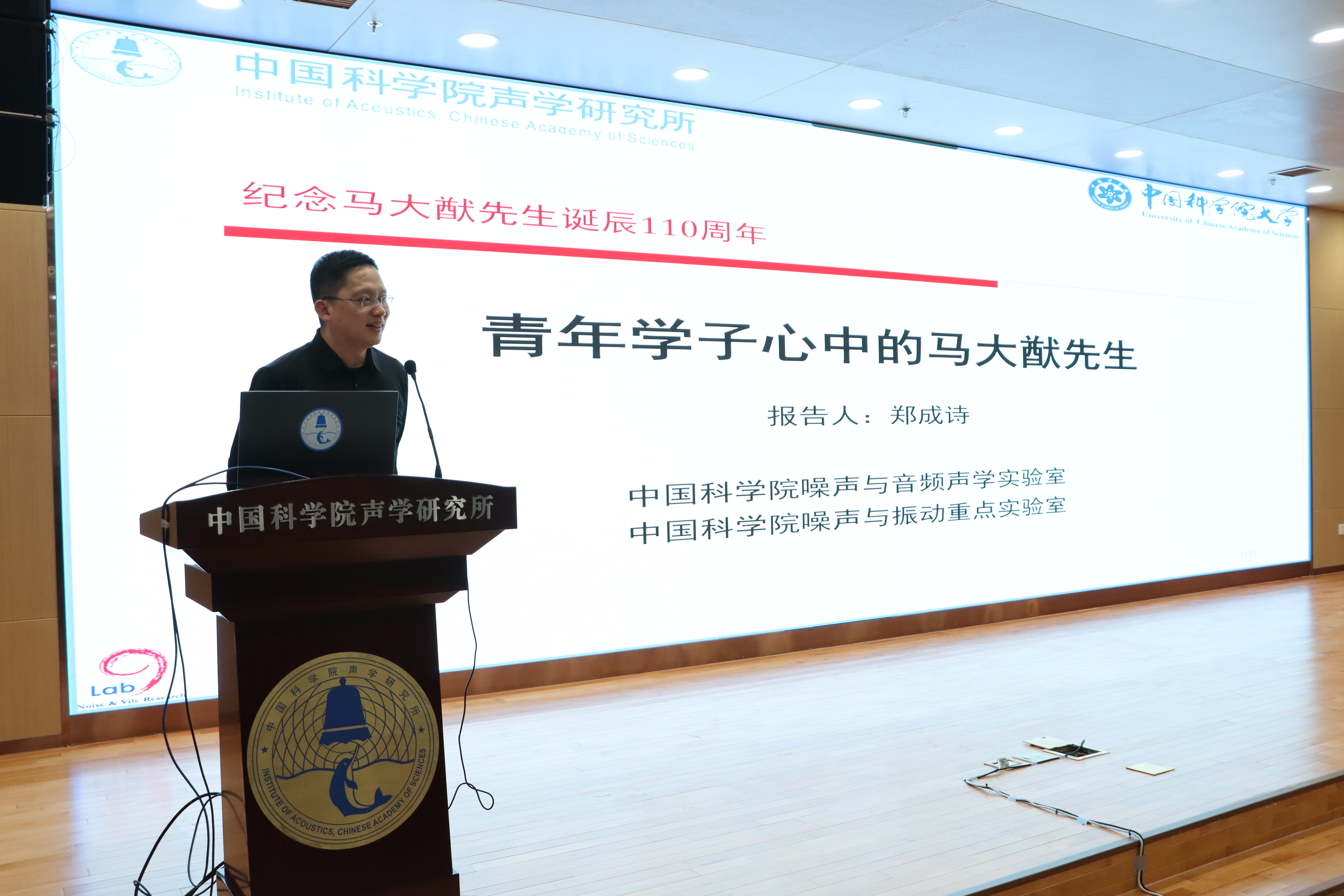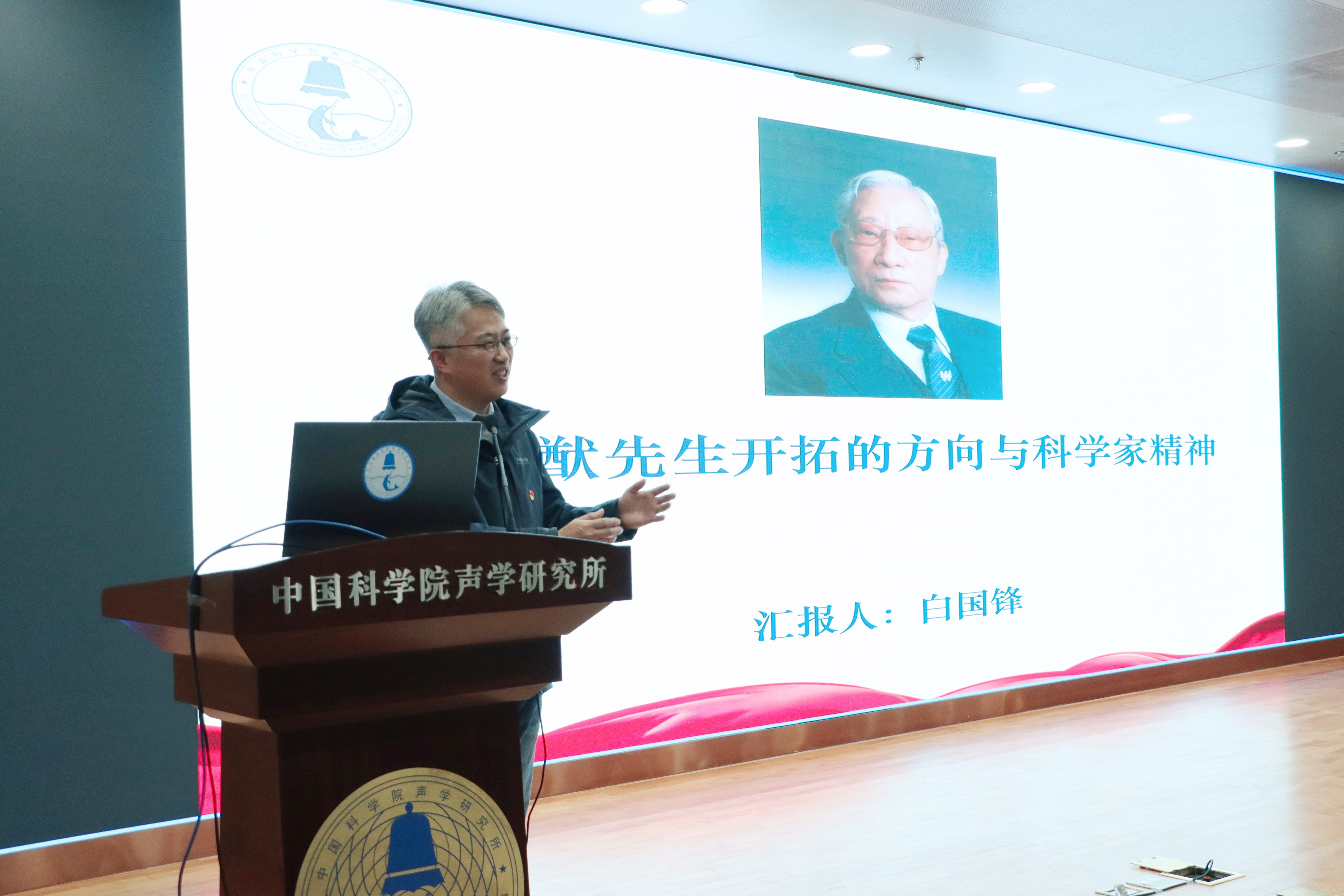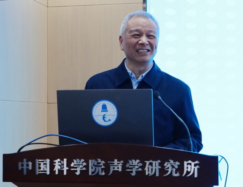 在专题报告环节,李晓东研究员作题为《微穿孔板吸声理论及其发展》的学术报告,从基本原理、吸声特性等方面深入浅出地阐述了恩师马大猷院士创立的微穿孔板吸声理论体系,及其在声学超材料等前沿领域的最新应用成果,并结合该领域论文高频发表的态势,展示了经典理论持久的生命力。白国峰研究员作题为《马大猷先生开拓的方向与科学家精神》的交流报告,通过大量图片资料,展示了马大猷院士在声学基础研究领域及国家重大任务的重大贡献;结合学习生活实例,分享了马先生爱国创新、求实奉献、协同育人的科学家精神,并呼吁青年学子秉承先生精神继续前进。郑成诗研究员以《青年学子心中的马大猷》为题,分享了马先生在自己心中学术泰斗、爱国科学家、教育先驱以及精神灯塔的崇高印象,表示愿做火炬手,举起马先生开创的声学事业接力棒继续奋勇前进。