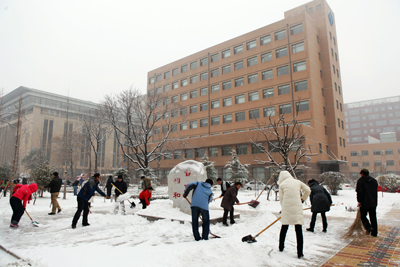 ——赢乐welcome广大职工、学生自发扫雪除冰
